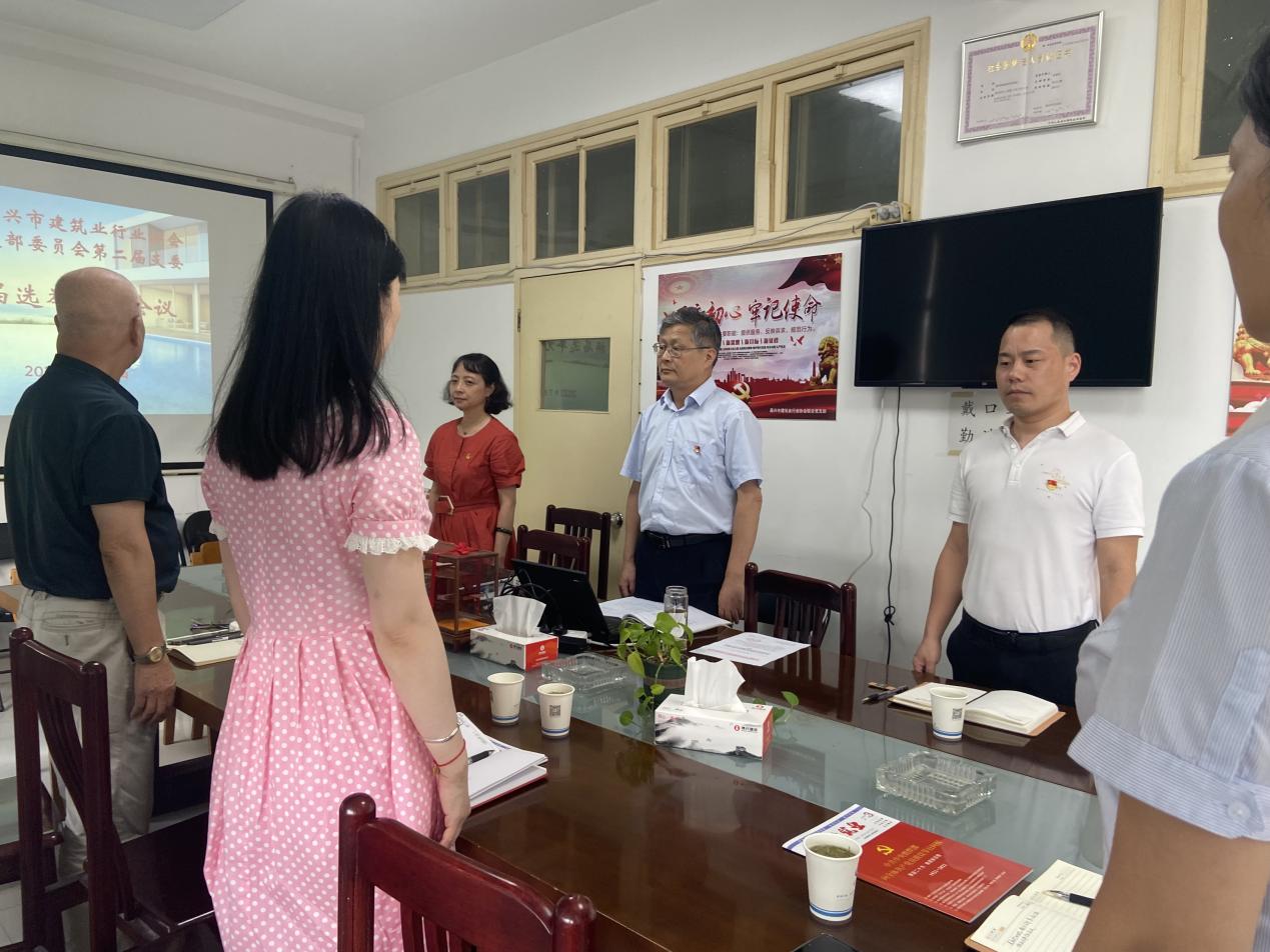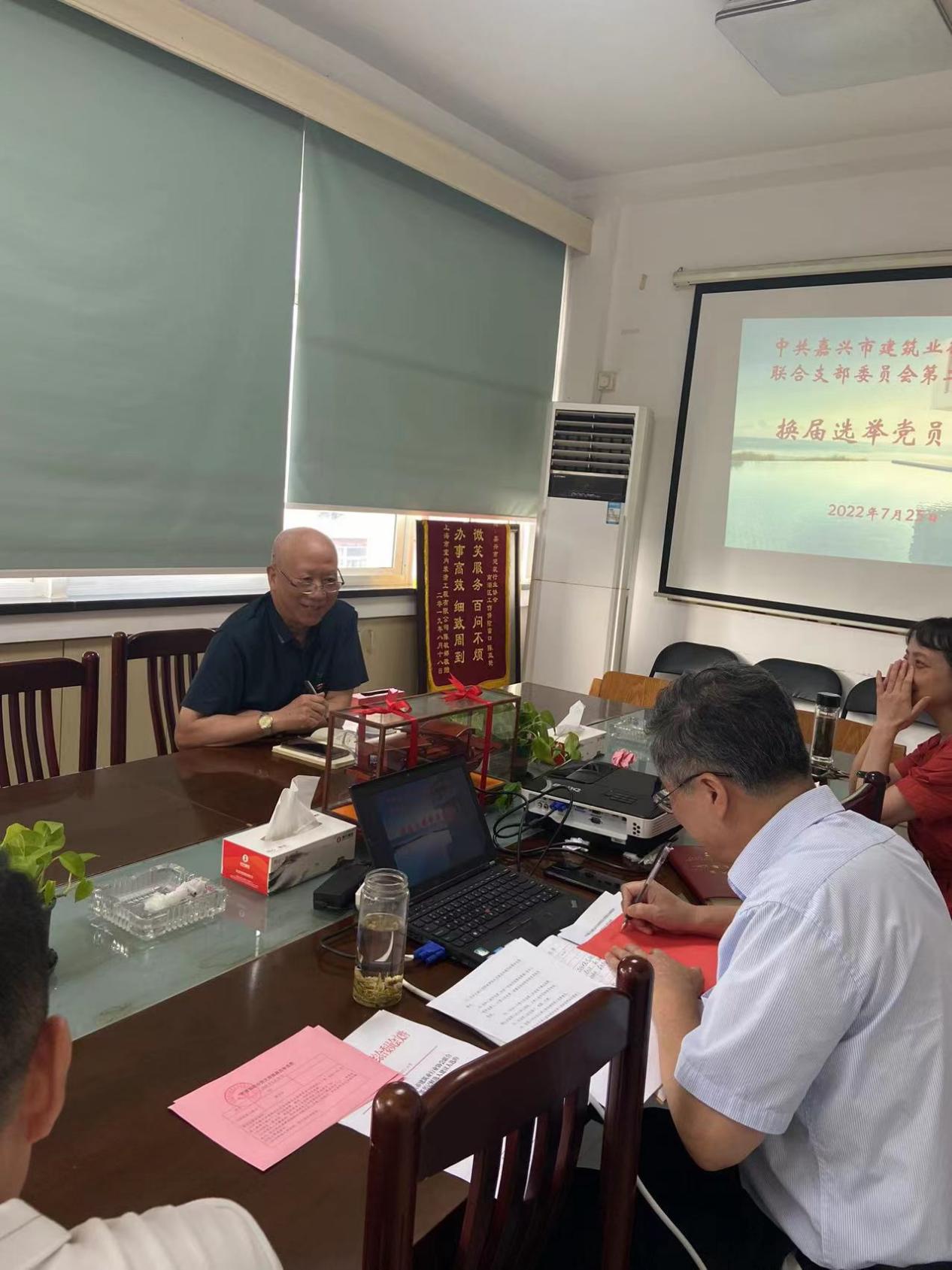 2022年7月25日下午,嘉兴市建筑业行业协会联合党支部在协会秘书处党员活动室,隆重召开了党支部换届选举党员会议,会议在雄壮的《国歌》声中开始,并在总结以往中欢送首届、在激情期待时喜迎二届,支部换届选举工作取得圆满成功!
