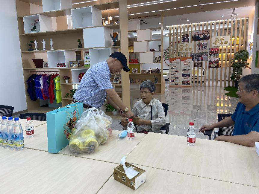 临别前张玉升书记将协会准备的礼盒装月饼、水果以及一份慰问金送到龙阿姨手上,祝愿她们全家开心快乐,过好今年的中秋、国庆佳节!